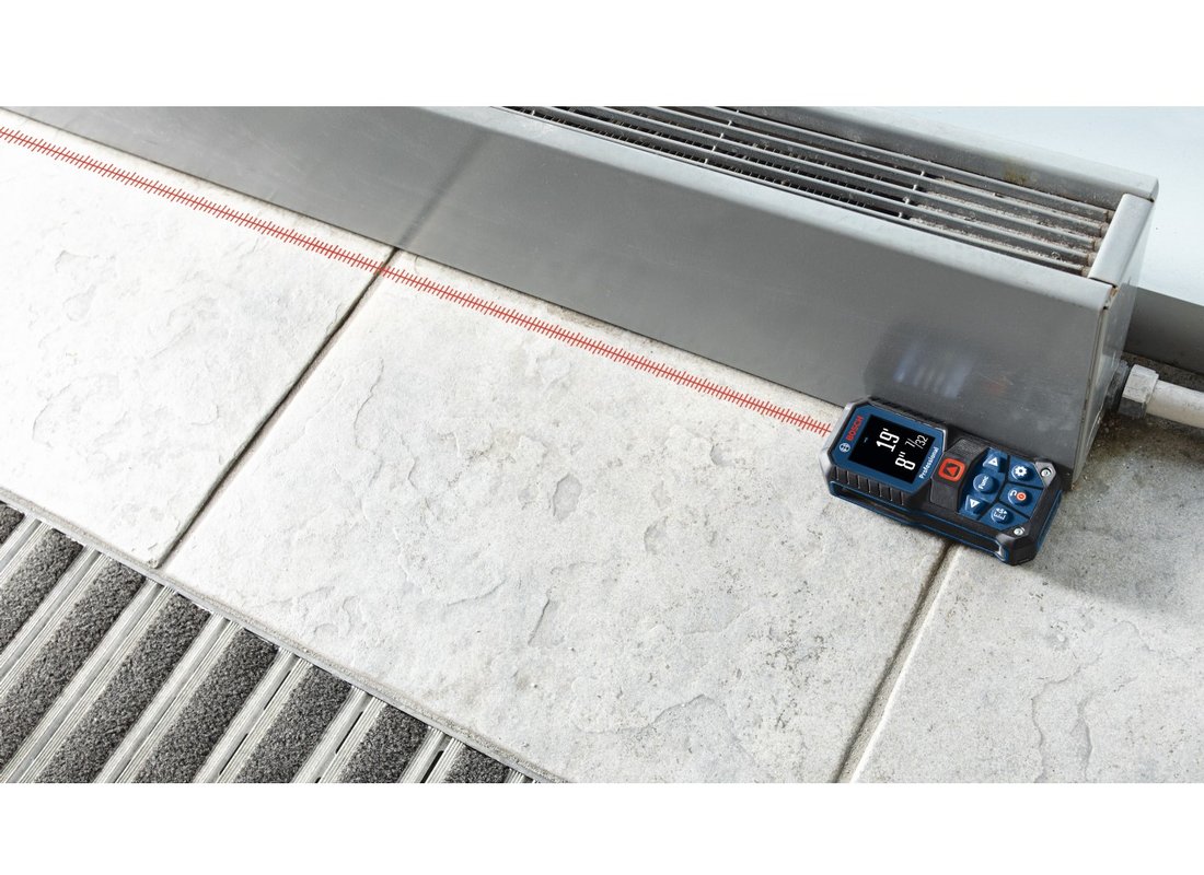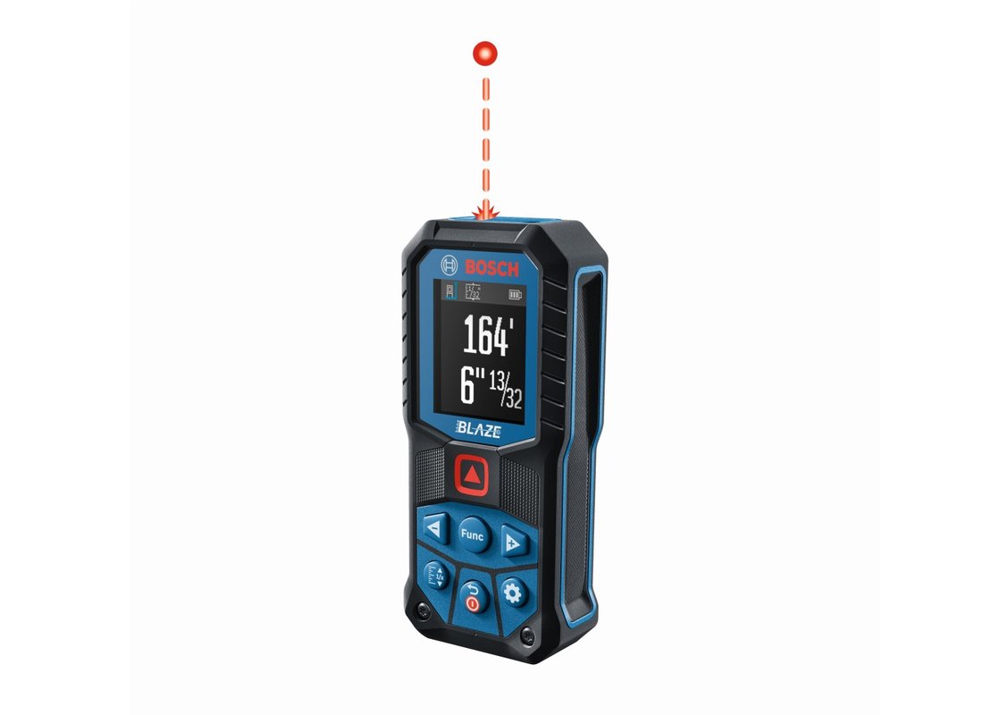 This 165 Ft. laser measure is a fully featured tool with an easy-to-read color display, great accuracy and reinforced housing for durability. The Bosch BLAZE™ GLM165-22 has accuracy up to ±1/16 In., plus it includes a rounding button that rounds the measurement to the fraction that best suits the application and haptic feedback for loud jobsites. The digital laser measure also offers full rubber overmold housing, designed to be similar to a roll cage. It is IP65 rated and has an ergonomic design for better grip. It has default real-time measurement mode, which immediately provides accurate measuring that automatically adjusts closer to or farther from the target. It includes 11 different measuring functions, including real-time length, length, area, volume and indirect functions, and addition/subtraction capability.