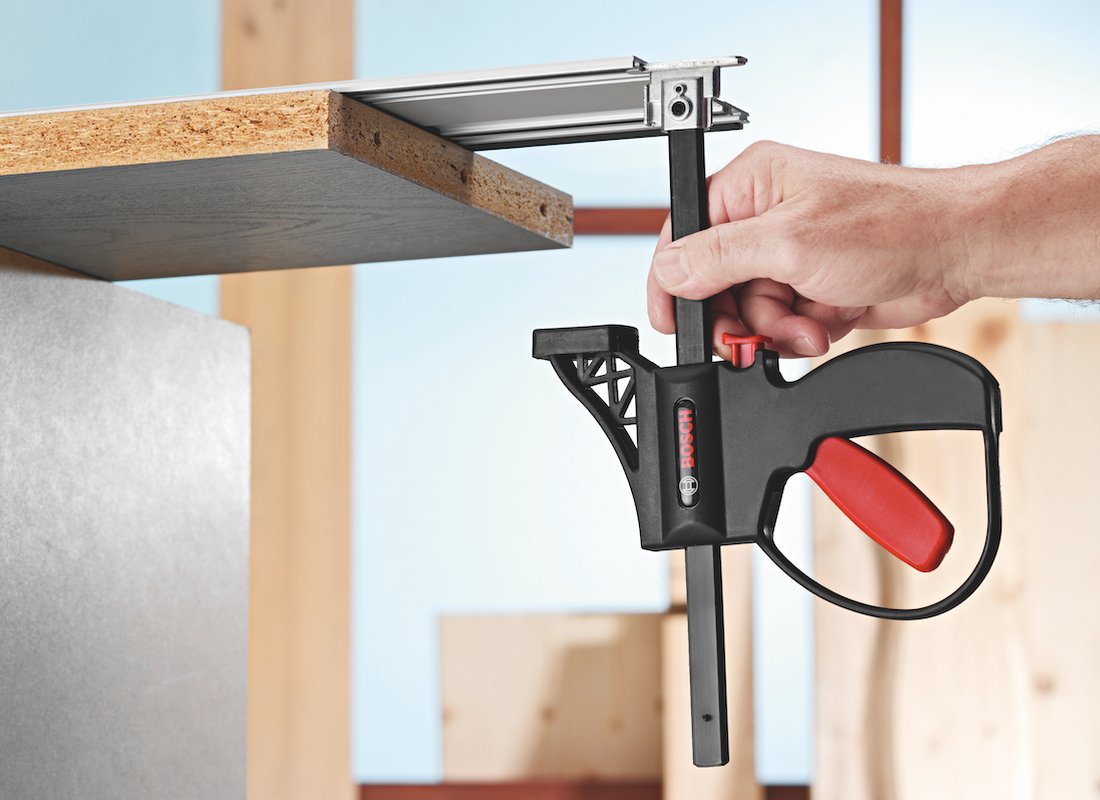 Les serre-joints à serrage rapide sont conçus pour être fixés sur les rails de guidage Bosch afin de solidariser rapidement le rail à la pièce par simple pression sur un levier. Les serre-joints à crans FSNKZW sont dotés d’une patte de fixation en métal pouvant être logée facilement dans la rainure à l’extrémité des rails pour un serrage rapide. Un simple pression sur un bouton-poussoir suffit pour les desserrer. Les rails (vendus séparément) font partie du système de rails de guidage Bosch permettant d’effectuer des coupes transversales et plongeantes de précision avec la scie plongeante. Faciles à utiliser, ils permettent de travailler avec précision. Facile à transporter et très pratique, l’ensemble scie plongeante + système de rails de guidage constitue une alternative à une scie à table pour les chantiers. Les coupes effectuées sont quasiment sans éclats et leur qualité est comparable à celle obtenue avec une scie à table.