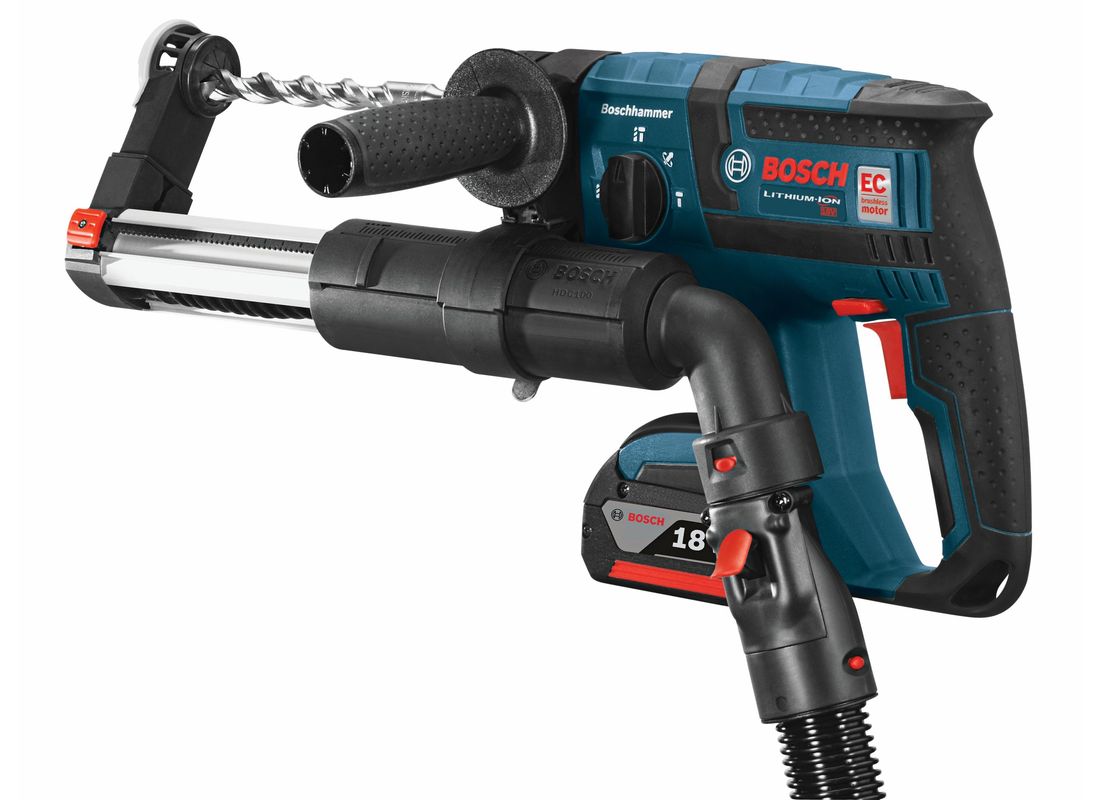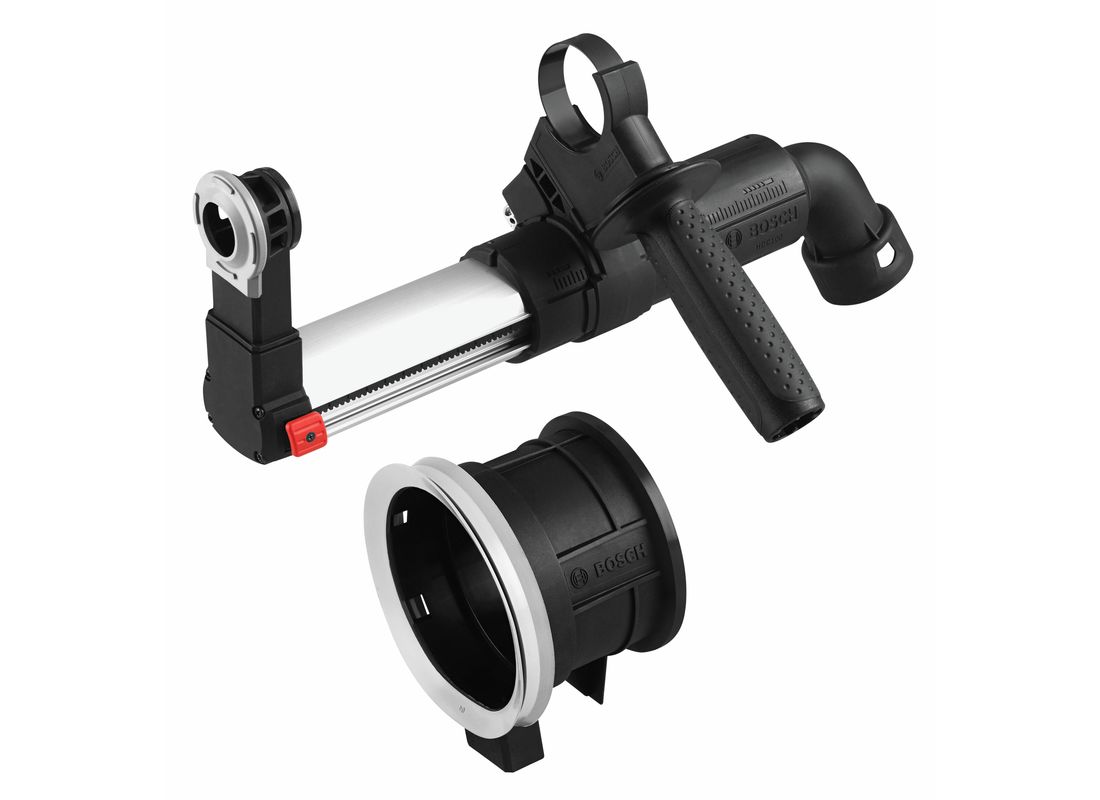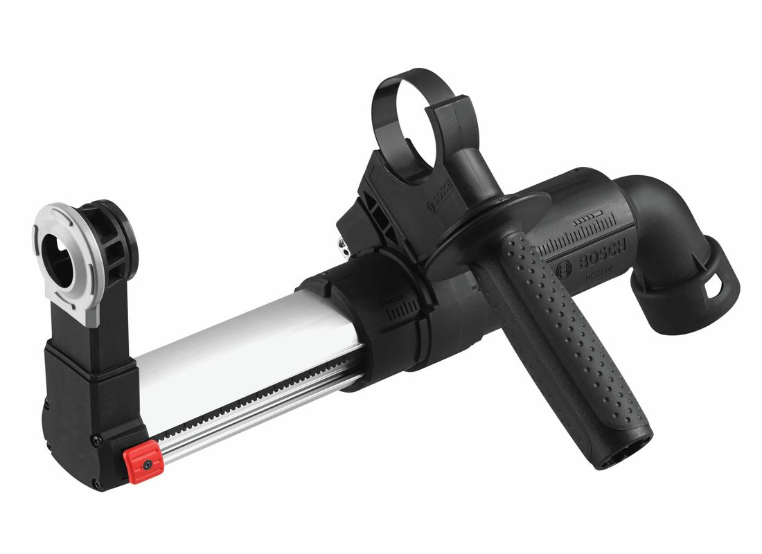 Le dispositif d’élimination de la poussière HDC100 SDS-plus® permet de réaliser une excellente récupération de la poussière lors de perçage avec des marteaux Bosch. Ce dispositif est adapté à la plupart des nouveaux marteaux SDS-plus® Bosch, avec un raccordement via une interface latérale unique. Le dispositif est équipé d’un bras téléscopique en métal pour une rétraction précise et permet d’être adapté à une profondeur de perçage jusqu’à 4-3/4 po et il est possible de l’ajuster vers le bas ou l’arrière avec un collier de serrage pour adapter plusieurs longueurs de foret. La prise d’élimination de la poussière peut être accrochée à un tuyau d’aspirateur jusqu’à 1-3/8 po ou peut être adapté à des tuyaux de 1-1/4 po ou 2 po lorsqu’elle est combinée à un adaptateur en option approprié.