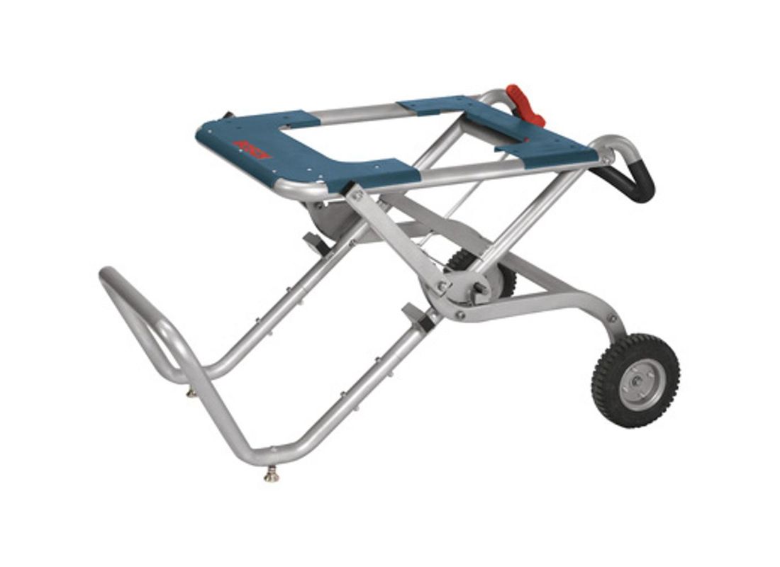 Le support à roulettes pour scie à table à position basse TS2100 Gravity-Rise™ a été conçu pour aider les utilisateurs à trouver la hauteur idéale de travail pour leurs scies à table. Sa position est plus basse que celle du modèle Bosch TS2000, mais il possède la même technologie révolutionnaire capable de rendre l'installation et le démontage plus rapide que jamais. Le support est compatible avec les scies à table de Bosch : REAXX™, 4100 et GTS1031, mais il peut également être utilisé avec de nombreuses scies appartenant à la concurrence comme DeWALT®, Makita®, Hitachi®, Craftsman®, Ridgid® et plus encore. Il est extrêmement facile à déplacer : Meules de 8 po avec pneus solides filetés non-pneumatiques peuvent facilement faire face aux conditions de terrain les plus difficiles sans jamais se dégonfler, et il pèse 52 lb. Le support bascule dans un chariot, facilitant ainsi le transport de la scie et du support. Son design pliable réduit l'encombrement lors du rangement, de sorte que le transport de ce support d'un chantier à l'autre est un jeu d'enfant. Le support robuste résiste à une force vers le bas de 250 lb et possède un revêtement en poudre pour prolonger sa longévité.