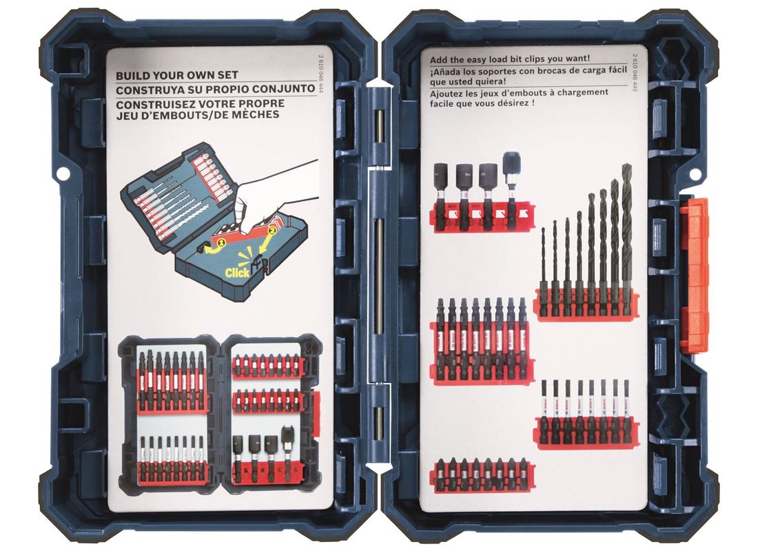 Le coffret sur mesure Bosch est conçu pour les embouts Impact Tough™. C’est le meilleur boîtier pour les meilleurs embouts. Le coffret résistant et de conception ingénieuse est équipé d’attaches mobiles des embouts. Cette fonctionnalité pratique facilite l’accès aux embouts. Les attaches sont facilement insérables et retirables du coffret pour simplifier l’accès et le transport des embouts vraiment nécessaires. Ce système de rangement personnalisable permet d’améliorer la productivité de l’utilisateur en réduisant le temps passé à la recherche de l’embout adapté.