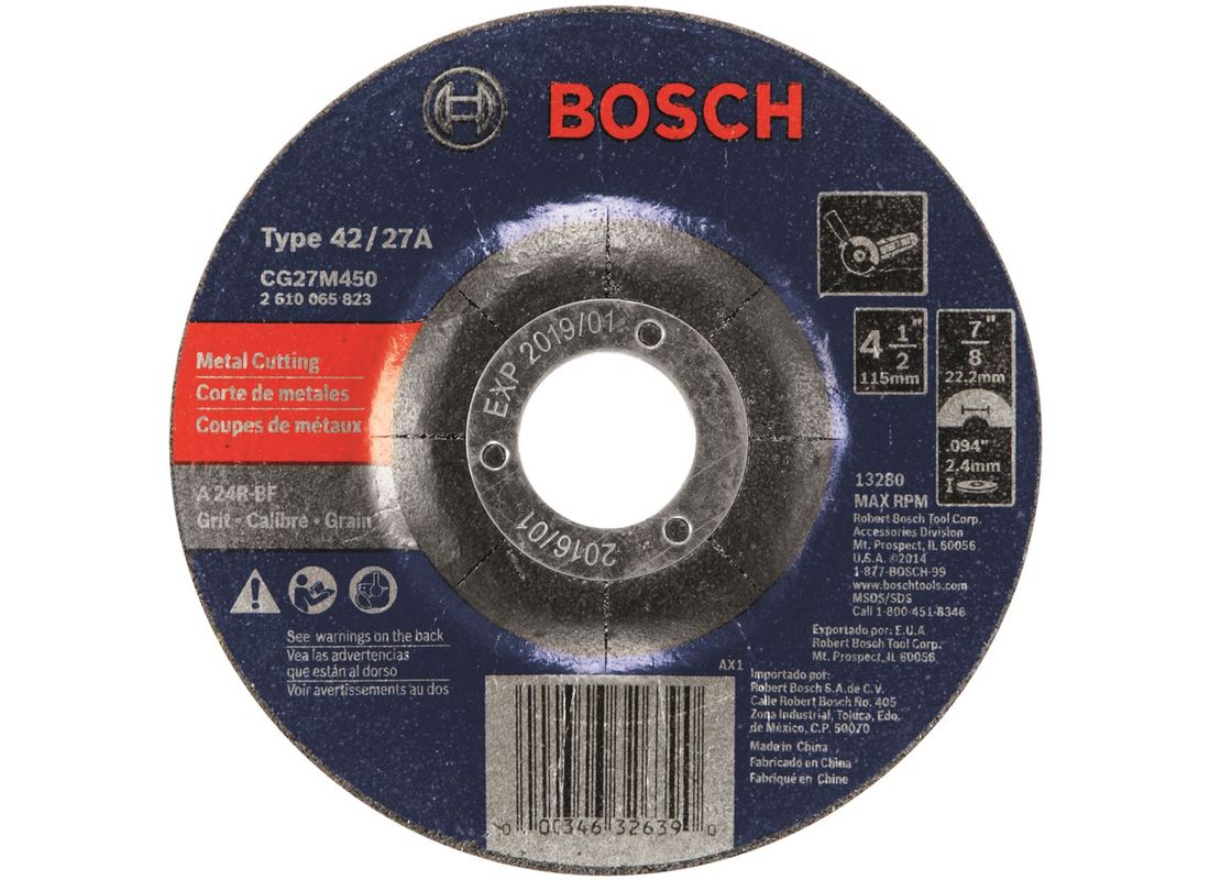 Les meules haut de gamme Bosch sont constituées de matériaux de grande qualité pour la coupe de métal, béton, maçonnerie, canalisations, asphalte et acier inoxydable. Des étiquettes faciles à lire sont incorporées lors du processus de fabrication et restent ainsi intactes pendant toute la durée de vie de la meule. Les encollages Reinold, formulés avec soin, sont utilisés pour répondre aux spécifications propres à chaque meule, et plusieurs couches de longues fibres de verre torsadées sont tissées afin de former un renfort à la résistance exceptionnelle et adapté à chaque utilisation. Bosch n’utilise que des grains de qualité supérieure répondant à des caractéristiques précises. Ces accessoires sont parfaitement compatibles avec les meuleuses fiables de Bosch. Ils peuvent être utilisés pour le polissage, le déblaiement et l’élimination de la poussière.