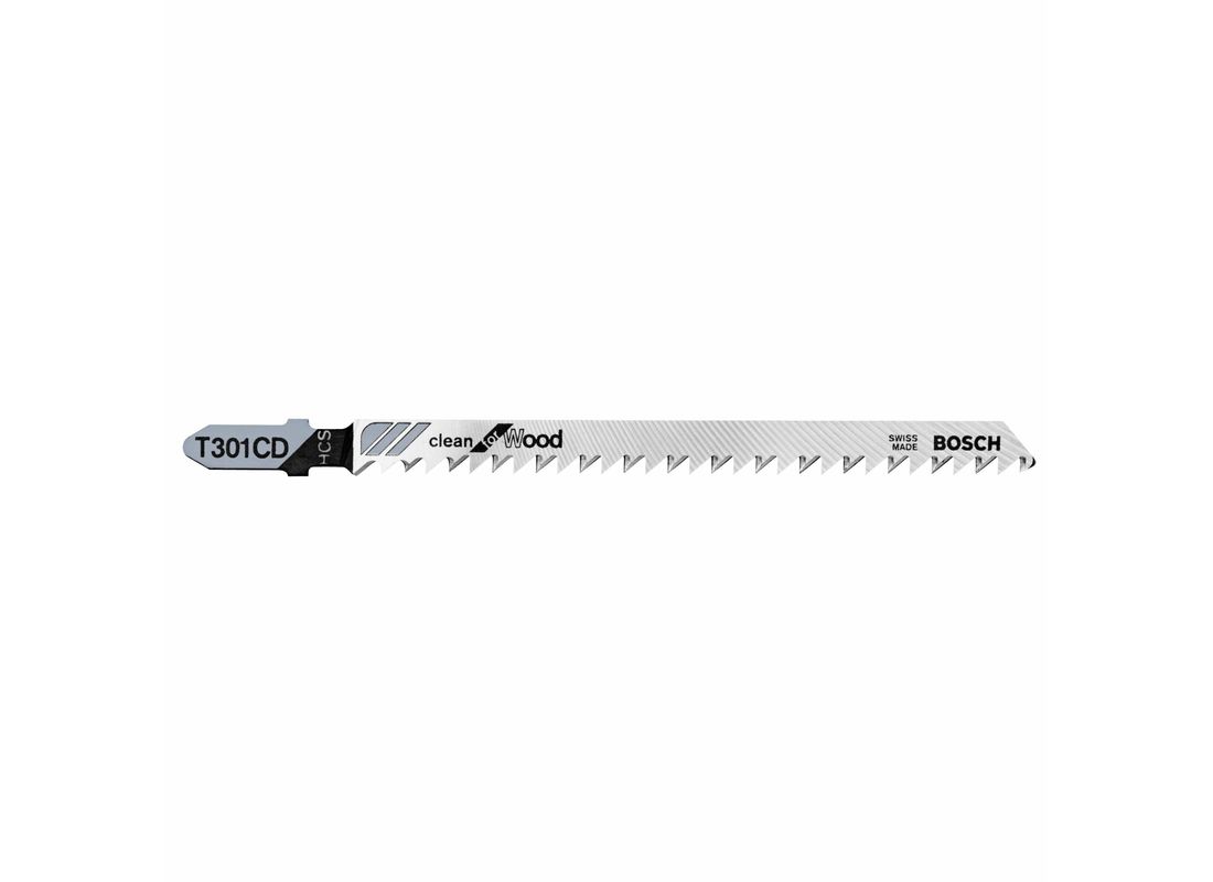 Bosch "Clean for Wood" blades cut cleanly and leave a smoother surface on both sides of the workpiece. High Carbon Steel body for long life in wood. Ideal for clean, curved cuts in wood and wood products. T-shank design for maximum grip and stability which fits 90% of all current jigsaw makes and models.