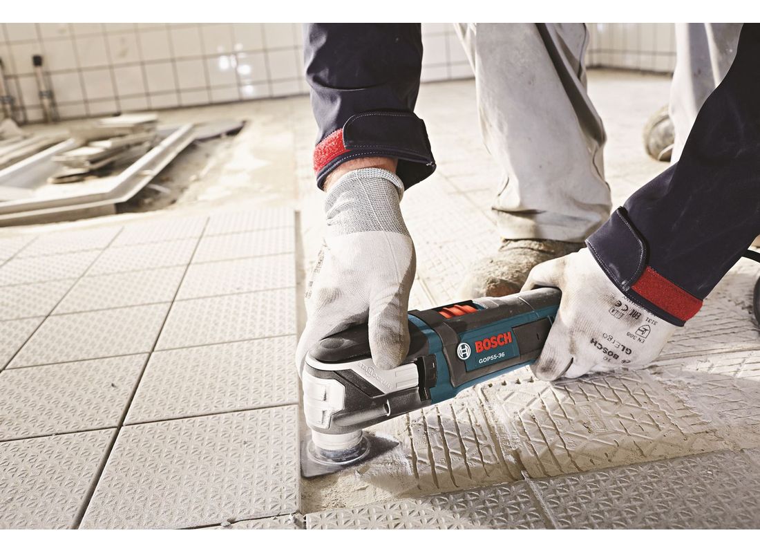 Le kit oscillant multifonction Bosch GOP55-36C1 StarlockMax® inclut l’interface outil-accessoire 3D de nouvelle génération Starlock®. Cette interface offre une parfaite prise des accessoires, générant à son tour une excellente transmission de puissance produite par le moteur de 5,5 A. Avec une surface de contact supérieure entre l’outil et l’accessoire, l’interface Starlock réalise une connexion en 3D entre l’accessoire et l’outil pour un parfait transfert de couple. Cet outil offre une vitesse jusqu’à 20 000 oscillations par minute avec un arc d’oscillation de 3,6° pour une meilleure productivité de la coupe, du meulage, du grattage et des autres tâches. Le système de changement de lame sans contact facilite la fixation, le démontage et le repositionnement des lames. Une molette de vitesse permet à l’utilisateur de régler manuellement la vitesse optimale pour la tâche et le circuit Constant Response maintient la vitesse désirée en charge. Cet outil de construction robuste dispose d’un engrenage renforcé pour plus de durabilité et moins de vibrations. En-dessous de quatre livres, cet outil oscillant offre un rapport puissance-poids inégalé. Il peut atteindre les petits espaces et fournit des zones de prise ergonomiques. Le GOP55-36 offre une polyvalence exceptionnelle et est compatible avec tous les accessoires Starlock® et StarlockPlus® – en plus des accessoires industriels StarlockMax® pour les applications extrêmes.