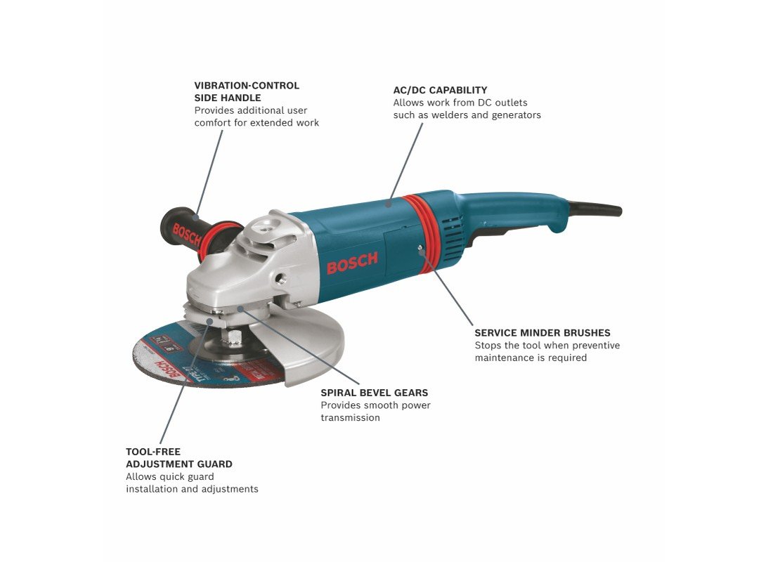 • Grande rectifieuse angulaire de 9 po et 15 A avec poignée en queue de rat Bosch 1893-6