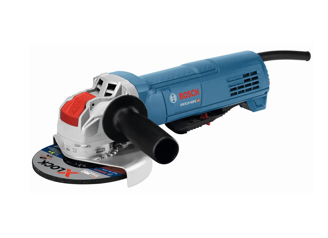La rectifieuse angulaire X-LOCK de 4-1/2 po GWX10-45PE Bosch dispose une interface de fixation X-LOCK permettant de changer d’accessoire jusqu’à 5 fois plus rapidement qu’avec les interfaces conventionnelles. Un clic est audible lors du montage d’un accessoire X-LOCK (meule, disque, brosse) sur une rectifieuse X-LOCK. Le montage d’un accessoire ne nécessite aucune clé à ergots ni écrou à embase. Pour retirer l’accessoire de la rectifieuse, il suffit de tirer sur un levier. La rectifieuse possède une zone de préhension de faible circonférence. La rectifieuse angulaire ergonomique GWX10-45PE est dotée d’un puissant moteur de 10 A et d’une zone de préhension de faible circonférence pour un confort et une maîtrise parfaites. Son régime à vide maximal de 11 000 tr/min assure une très bonne productivité dans les applications de meulage et de tronçonnage. Elle ne pèse que 4,6 lb et dispose d’un interrupteur à palette actionnable dans plusieurs positions pour une meilleure ergonomie, une meilleure maîtrise et un plus grand confort. Dotée de bobinages revêtus de résine époxy et d’un moteur à refroidissement direct, cette rectifieuse est conçue pour durer. Ses engrenages coniques à denture spirale assurent une transmission fluide du couple. Pour plus de confort, elle possède une poignée auxiliaire et un capot de protection réglable sans clé.