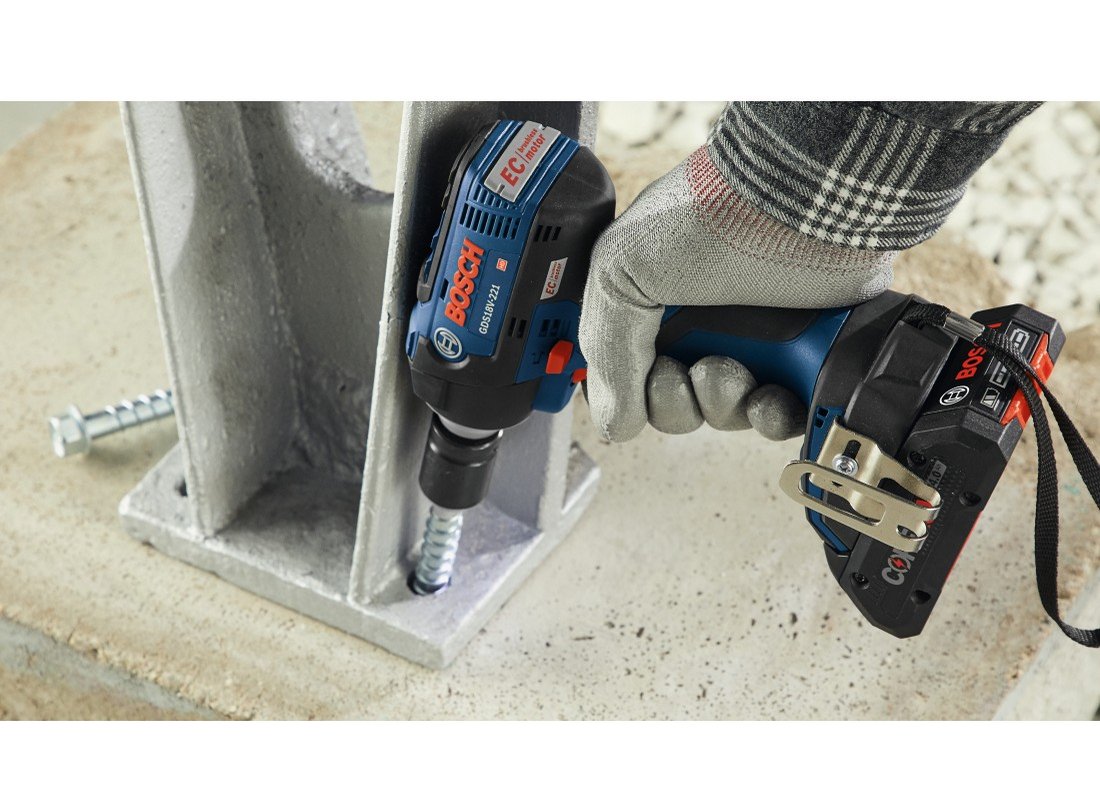 La boulonneuse EC sans balais 18 V de 1/2 po GDS18V-221B25 18 V EC Bosch avec bague de friction et trou traversant est conçue pour visser des boulons, écrous et ancrages avec un couple élevé. Cet boulonneuse dispose de la fonction ABR (Auto Bolt Release) arrêtant la rotation dès que le couple devient nul afin de prévenir la chute des boulons et écrous lors de leur desserrage. Cet outil est doté d’un système de percussion Bosch permettant de disposer d’une force de frappe élevée. Le moteur EC sans balais très performant assure une grande autonomie et fournit jusqu’à 221 pi-lb de couple, une fréquence de frappe à vide de 0 à 3 400 BPM et un régime à vide de 0 à 2 400 tr/min. Cette clé est particulièrement compacte et légère ; elle a une longueur de tête de 6,4 po et ne pèse que 2,77 lb. L’ensemble inclut deux batteries Compact CORE18V 4.0 Ah de nouvelle génération. La technologie de cellules 21700 a permis d’alléger les batteries tout en conservant la même puissance et la même autonomie. La batterie CORE18V est plus puissante qu’une batterie de 4,0 Ah classique à deux rangées de cellules bien qu’ayant deux fois moins de cellules. Elle est également dotée du système de gestion thermique CoolPack 2.0 pour une plus grande autonomie et une plus longue durée de vie.