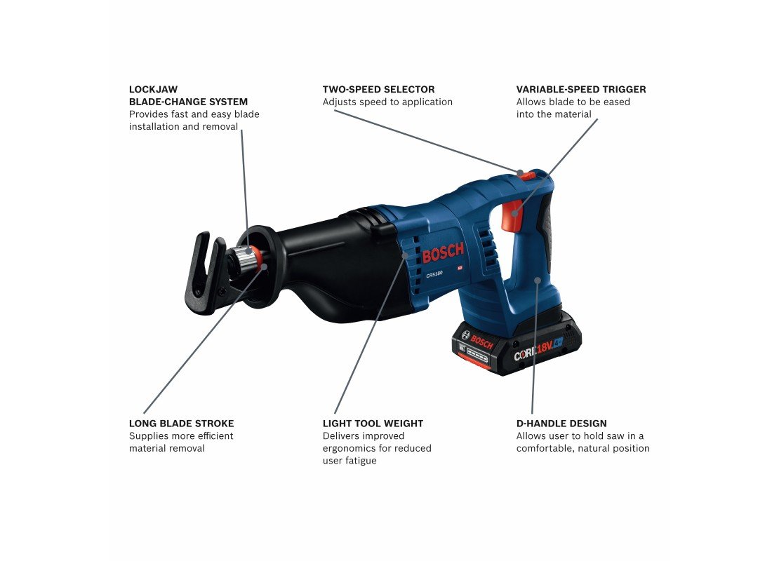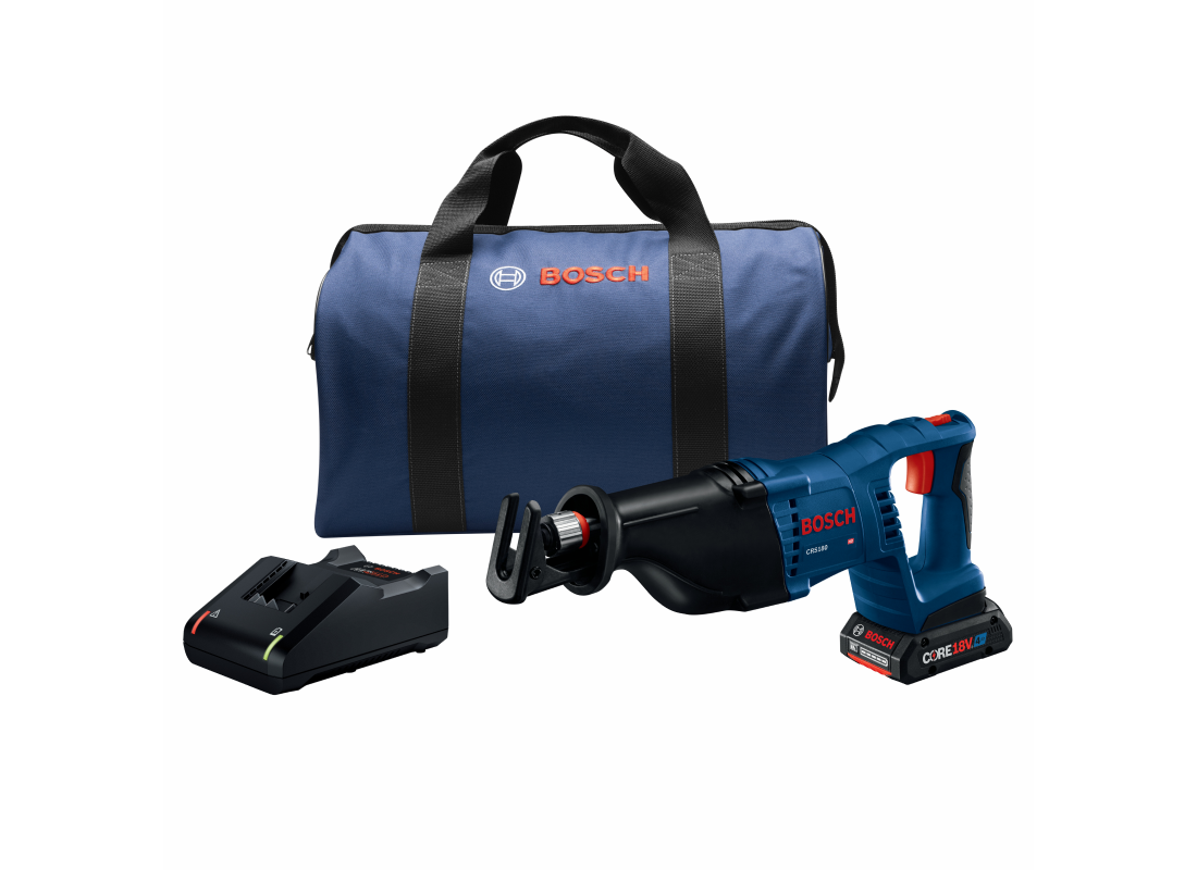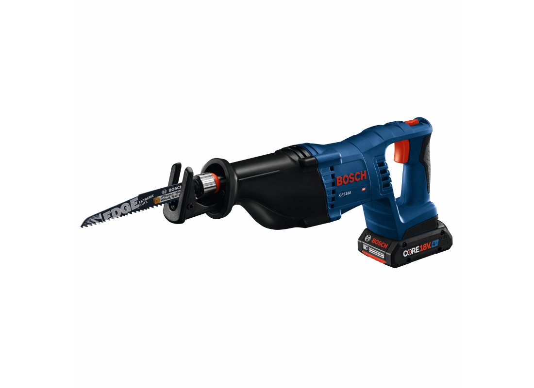 L’ensemble scie alternative 18V de 1-1/8 po à poignée en D CRS180-B15 Bosch comprend une scie puissante et compacte et une batterie CORE18V 4 Ah. Avec une longueur de 17,7 po et un poids de seulement 6,35 lb (outil seul, sans batterie), cette scie alternative se distingue par une course remarquable de 1-1/8 po et une capacité d’enlèvement de matière élevée. Le système de blocage de lame Lockjaw permet de changer de lame facilement d’une seule main. Elle possède deux vitesses pour pouvoir adapter la vitesse de coupe à chaque matériau. La batterie Advanced Power CORE18V® est une batterie Lithium-Ion de nouvelle génération permettant de disposer de la même puissance et de la même autonomie, tout en étant plus légère. Dotée d’une seule rangée de cellules dernier cri du type 21700, la batterie GBA18V40 offre avec deux fois moins de cellules une puissance équivalente à celle d’une batterie de 4,0 Ah classique à deux rangées de cellules. La batterie CORE18V® de nouvelle génération dispose du système de gestion thermique CoolPack 2.0 (exclusivité Bosch) et de la technologie dernier cri.