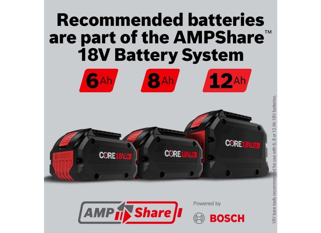 • Compatibilité AMPShare™ : les batteries et chargeurs 18V sont compatibles avec les outils sans fil 18V Bosch et une liste croissante de produits sans fil des marques AMPShare™ partenaires
