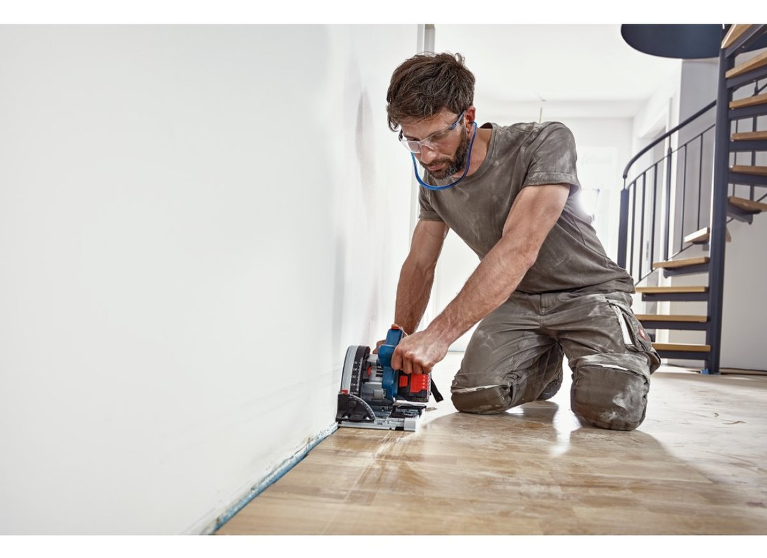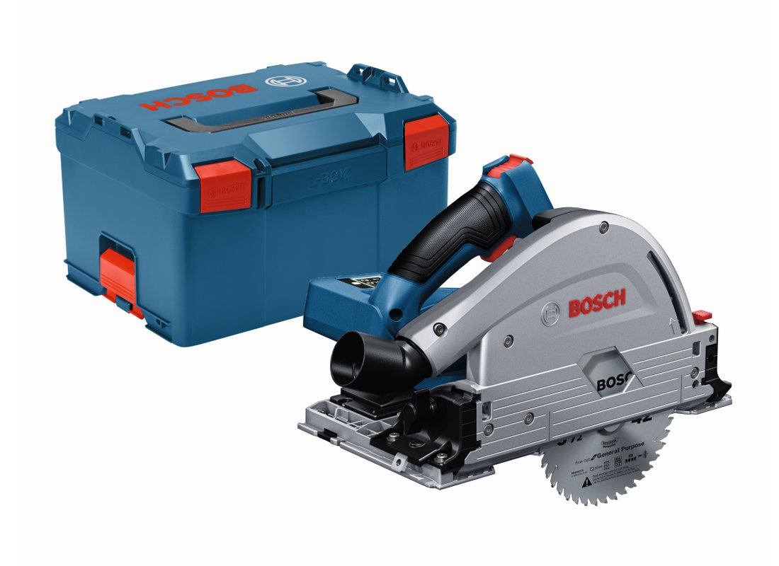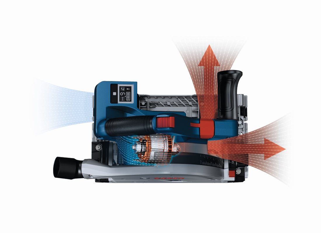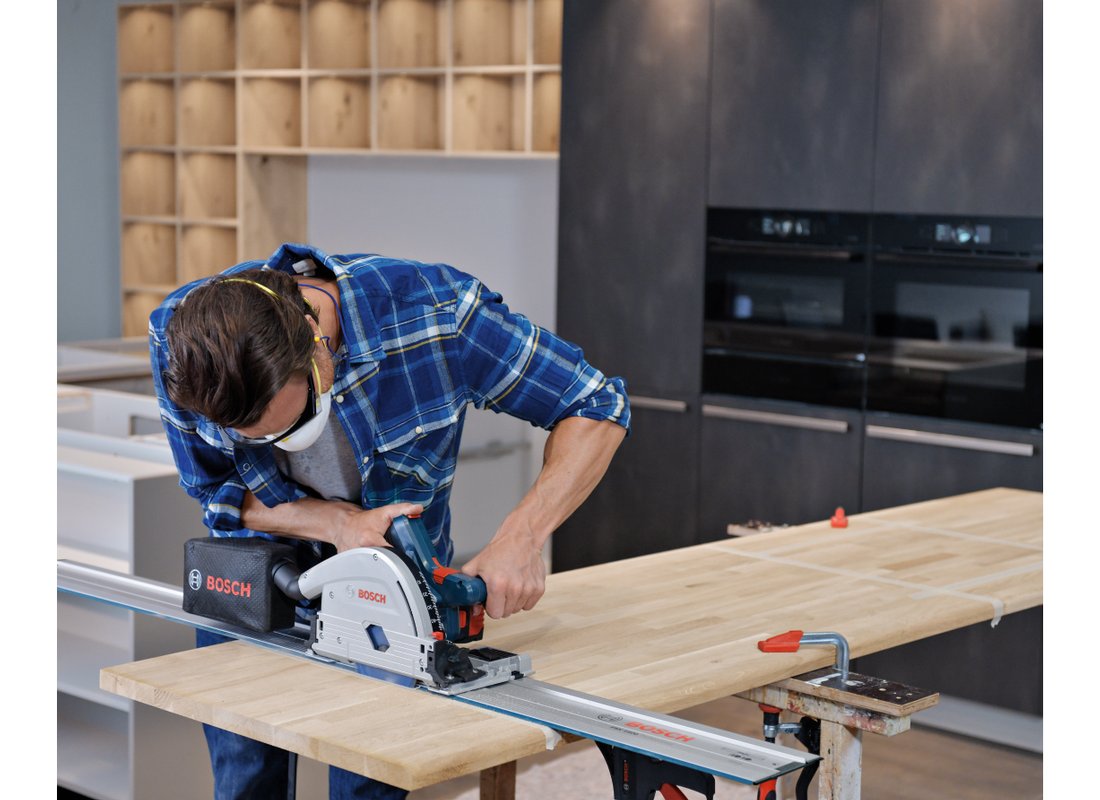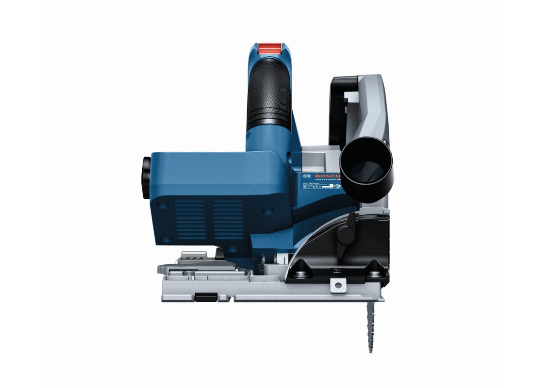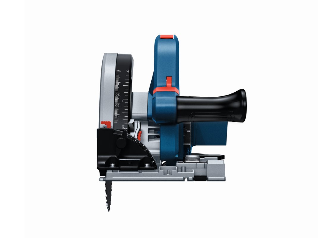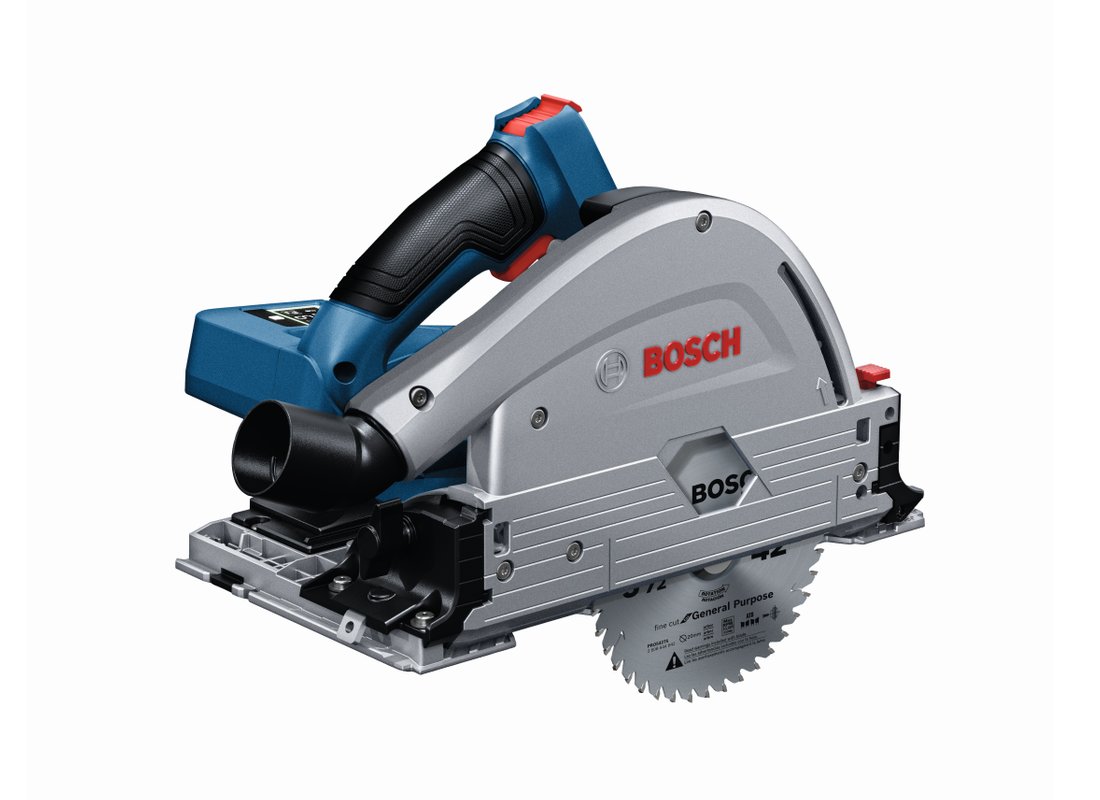 La GKT18V-20GCL Bosch est une scie plongeante sans fil compacte à une batterie, aussi performante qu’une scie plongeante filaire. Elle permet des coupes précises et nettes dans des panneaux de bois plaqués et dérivés, notamment dans des panneaux de particules stratifiés et le contreplaqué. Très compacte, elle offre un grande mobilité grâce au système d’alimentation à batterie unique et à la lame de scie de 5-1/2 po. Le système de guidage par rail de la scie permet un ajustage exact et la réalisation de coupes classiques et plongeantes de grande précision. Les coupes effectuées sont quasiment sans éclats et leur qualité est comparable à celle obtenue avec une scie à table. Cette scie fait partie du système PROFACTOR associant la technologie BITURBO Brushless et une batterie PROFACTOR CORE18V. La technologie BITURBO Brushless allie un moteur et un système de transmission hautement performants permettant de disposer d’une puissance comparable à celle des outils filaires pour applications exigeantes. Conçue pour effectuer des coupes près d’un mur, elle affiche une distance lame-mur minimale de 0,4 po. Elle dispose d’un mode ECO offrant jusqu’à 30 % d’autonomie en plus, d’un écran de contrôle et d’une fonction connectivité. Elle est compatible avec le système de rails de guidage Bosch permettant d’effectuer des coupes droites rapides.