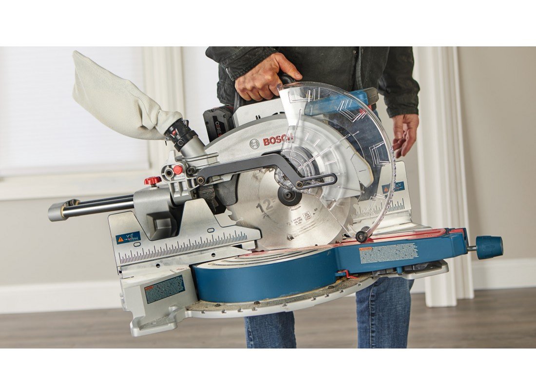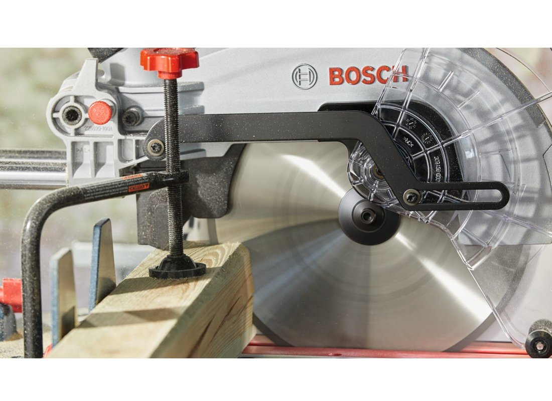 Cette scie à onglets Bosch de 12 po constitue une solution sans fil professionnelle pour les chantiers avec sa grande capacité de coupe et ses performances PROFACTOR™. La GCM18V-12SD offre une grande capacité de coupe de 3,5 po en profondeur et de 14 po en largeur/pour les coupes transversales. Les grands guides de 5,5 po soutiennent les pièces de grandes dimensions pour des coupes précises. Elle offre par ailleurs une double inclinaison et dispose de crantages pour les angles d’inclinaison les plus courants. Cela permet de réaliser des coupes composées/doubles de chaque côté de la pièce. Elle dispose d’une ligne de coupe matérialisée par LED et de deux barres coulissantes centrées avec précision pour des résultats de coupe parfaits. Pratique et maniable, elle possède une poignée de transport et accepte une grande variété de lames de 12 po. Cette scie fait partie du système PROFACTOR™ associant la technologie BITURBO Brushless™ et une batterie haute performance CORE18V®. La technologie BITURBO Brushless™ combine un moteur haute performance et un système de transmission conçu pour fournir une puissance comparable à celle des outils filaires à forte demande. Elle assure une bonne aspiration de la poussière avec le sac à poussière fourni et permet le raccordement facile à un aspirateur. Le serre-joint réglable sans clé stabilise les pièces pendant les coupes.