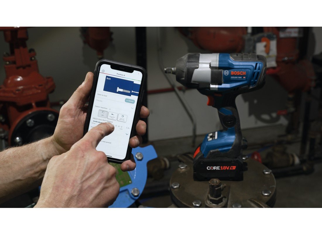 - Connectivité (module inclus) : permet une connexion à l’application Bosch PRO360 sur un appareil mobile pour personnaliser les réglages et obtenir des informations détaillées sur l’état de l’outil