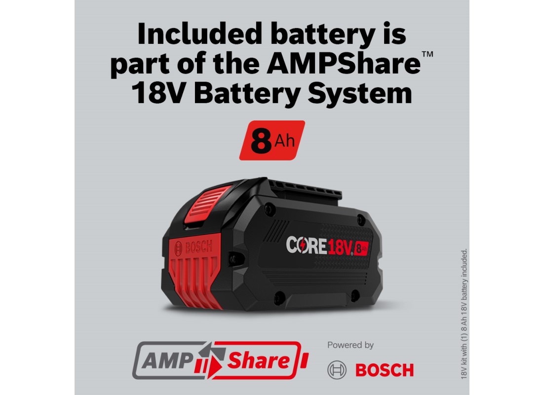 - Batterie High Power CORE18V® 8 Ah : compatible avec les outils 18V Bosch ; optimisée pour les outils PROFACTOR™ offre une autonomie 2 fois supérieure à une batterie GBA18V40