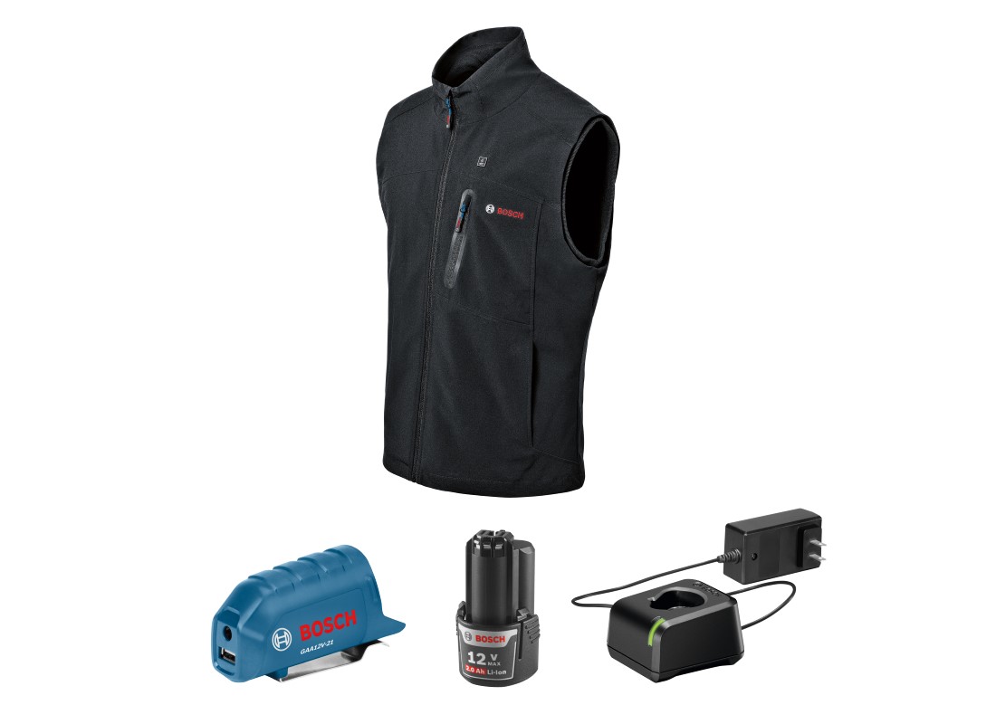 Très polyvalent et de forme moderne, l’ensemble gilet chauffant GHV12V-20 Bosch est constitué d’une matière souple légère, de grandes poches et d’éléments chauffants placés à des endroits stratégiques. Le gilet dispose de trois zones chauffantes et possède une matière extérieure très résistante, coupe-vent et imperméable alliant confort et durabilité. Deux des zones de chauffe sont situées au niveau de la poitrine et la troisième au bas du dos, à des endroits stratégiques assurant un réchauffement efficace du corps. Cet ensemble inclut l’adaptateur d’alimentation portatif 12 V Max Bosch GAA12V-21 permettant l’utilisation d’une batterie 12 V Max Bosch pour alimenter avec un courant de 2,1 A une multitude d’appareils électroniques personnels, tels que appareils mobiles, téléphones, tablettes. Les utilisateurs ayant besoin d’encore plus d’autonomie et désireux d’utiliser leurs batteries 18 V Bosch peuvent opter à la place pour l’adaptateur d’alimentation portatif 18 V GAA18V-24 18V (vendu séparément).