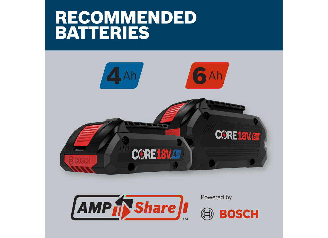 • Compatibilité AMPShare™ : les batteries et chargeurs 18V sont compatibles avec les outils sans fil 18V Bosch et une liste croissante de produits sans fil des marques AMPShare™ partenaires