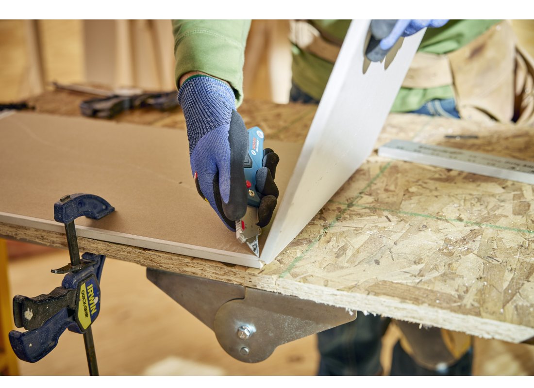 - Repose-pouce : pour une meilleure maîtrise et plus de confort lorsqu’il s’agit d’exercer plus de force pour la coupe de matériaux durs