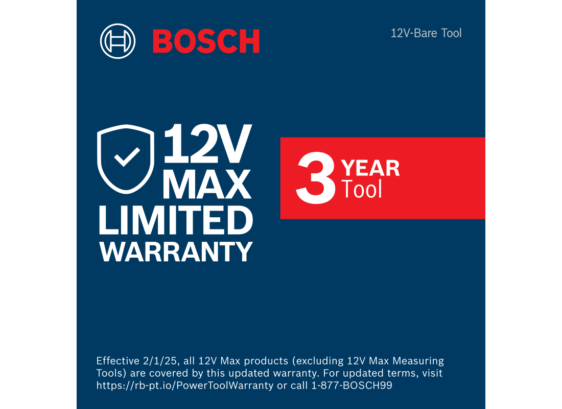- Bosch 12V Max cordless power tools are covered by a three year limited warranty - for details, visit https://rb-pt.io/PowerToolWarranty or call 1-877-BOSCH99