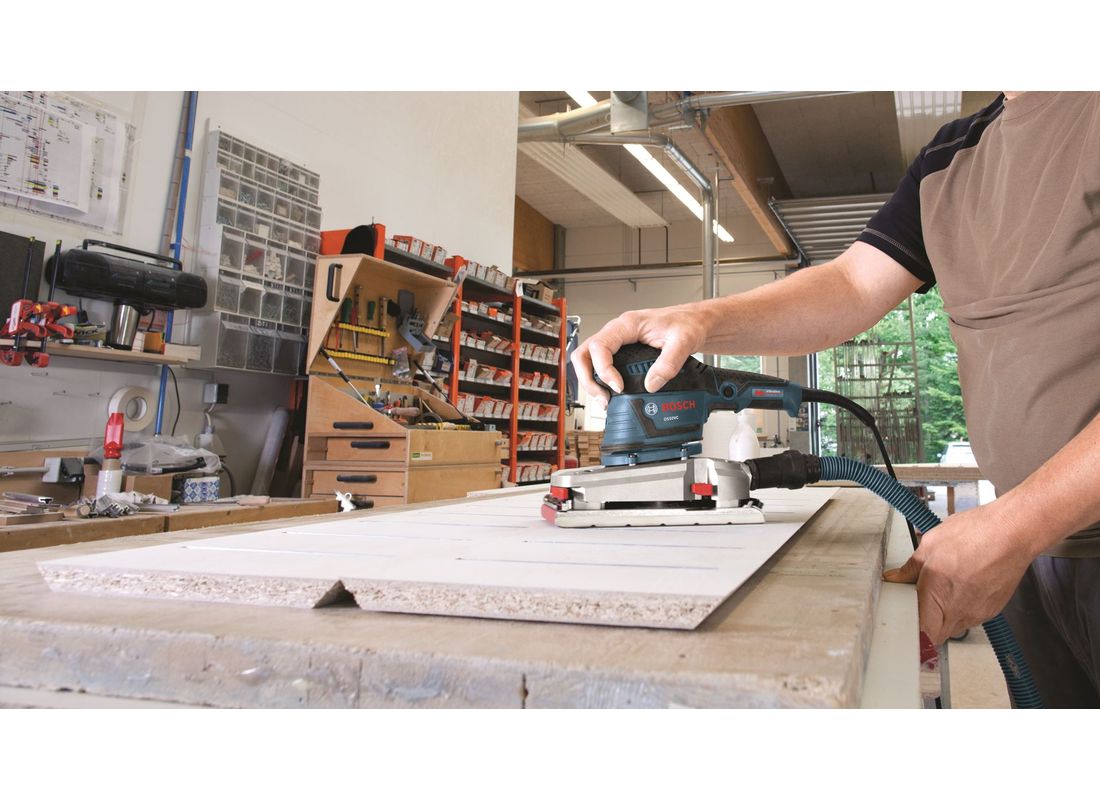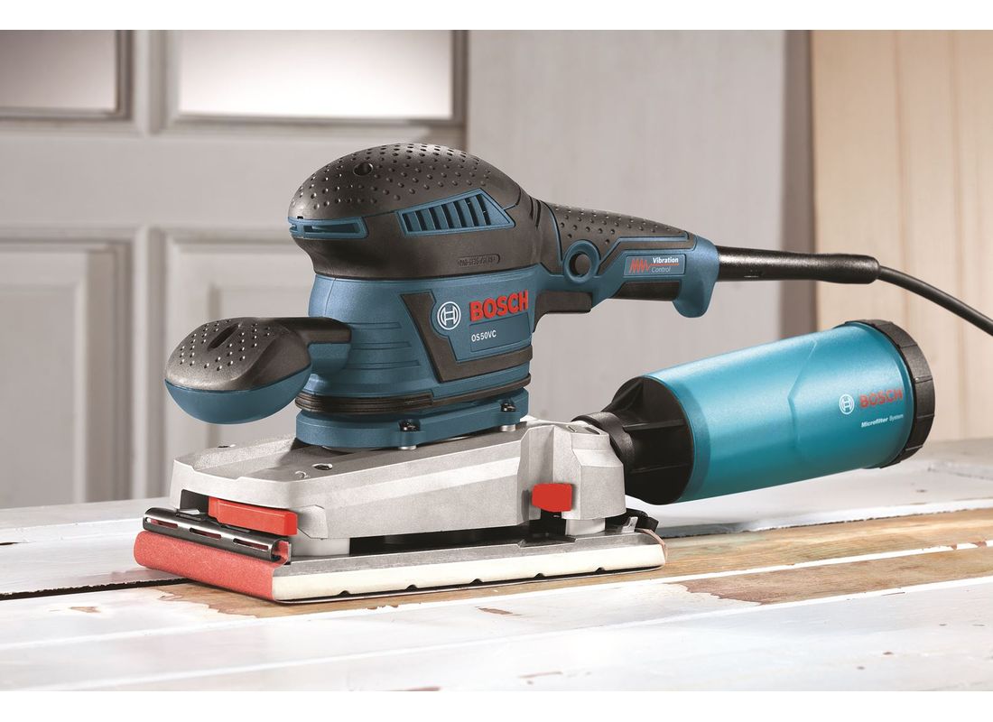 La ponceuse vibrante à mouvement orbital pour feuille 1/2 Bosch OS50VC permet aux utilisateurs de réaliser une insertion de papier parfaite avec le système de fixation de papier SheetLoc™ Supreme. Cela prolonge la durée de vie de papier abrasif classique. L’outil est fourni avec un tampon intermédiaire microcellulaire extrêmement souple et hautes performances qui s’ajuste à de nombreux contours. Conçue pour les installateurs de cuisine, les peintres et les ébénistes, cette ponceuse intègre un système de suspension Vibration Control™ qui minimise les vibrations pour une manipulation exceptionnelle. Le moteur puissant de 3,4 A permet un taux d’enlèvement élevé, tandis que des prises souples multiples améliorent l’ergonomie et réduisent la fatigue de la main. Deux systèmes de collecte de la poussière permettent de maintenir propre votre espace de travail, comprenant une cartouche transparente de collecte de la poussière à microfiltre avec filtre en papier intégré et une prise pour boyau d’aspirateur avec contrôle du débit d’air. Adapter la vitesse et la puissance à la pièce et au travail à effectuer pour un rendement optimal avec le cadran de réglage de la vitesse variable. Le carter d’engrenages en aluminium moulé robuste élimine les oscillations et les vibrations et prolonge la durée de vie de l’outil.