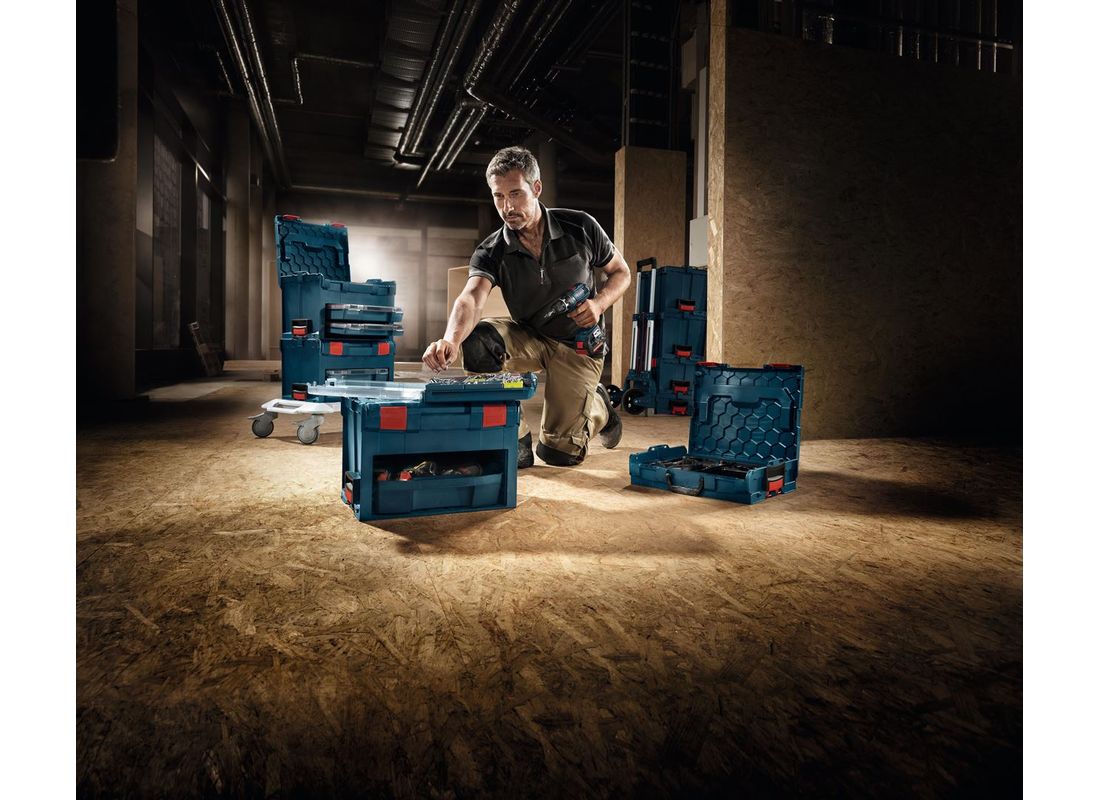 Le nouveau L-BOXX est un système de stockage d’outils empilable innovant conçu pour améliorer l’organisation des outils et leur transport sur le chantier. Le modèle L-BOXX 3, un des quatre coffrets, est parfait pour stocker des outils de système sans fil de 18 V et divers outils à cordon, avec de la place pour des accessoires. Les poignées supérieure, frontale et latérale vous donnent trois options de transport pour le confort et la portabilité dans toutes les situations. Les pinces de fermeture du coffret s’ouvrent facilement et peuvent être verrouillées pour empêcher le vol. L-BOXX : cliquer, empiler, partir.