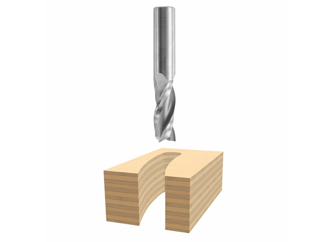 L’embout au carbure micrograiné de qualité supérieure est affûté avec précision pour une finition très soignée avec une finesse maximale et une netteté des bords. La fraise à spirale ascendante est utilisée pour une évacuation des copeaux vers le haut et pour produire une finition optimale sur la partie inférieure de la pièce à travailler. Le cisaillage produit une coupe particulièrement nette et précise, tandis que le mouvement hélicoïdal permet d’enlever les copeaux.